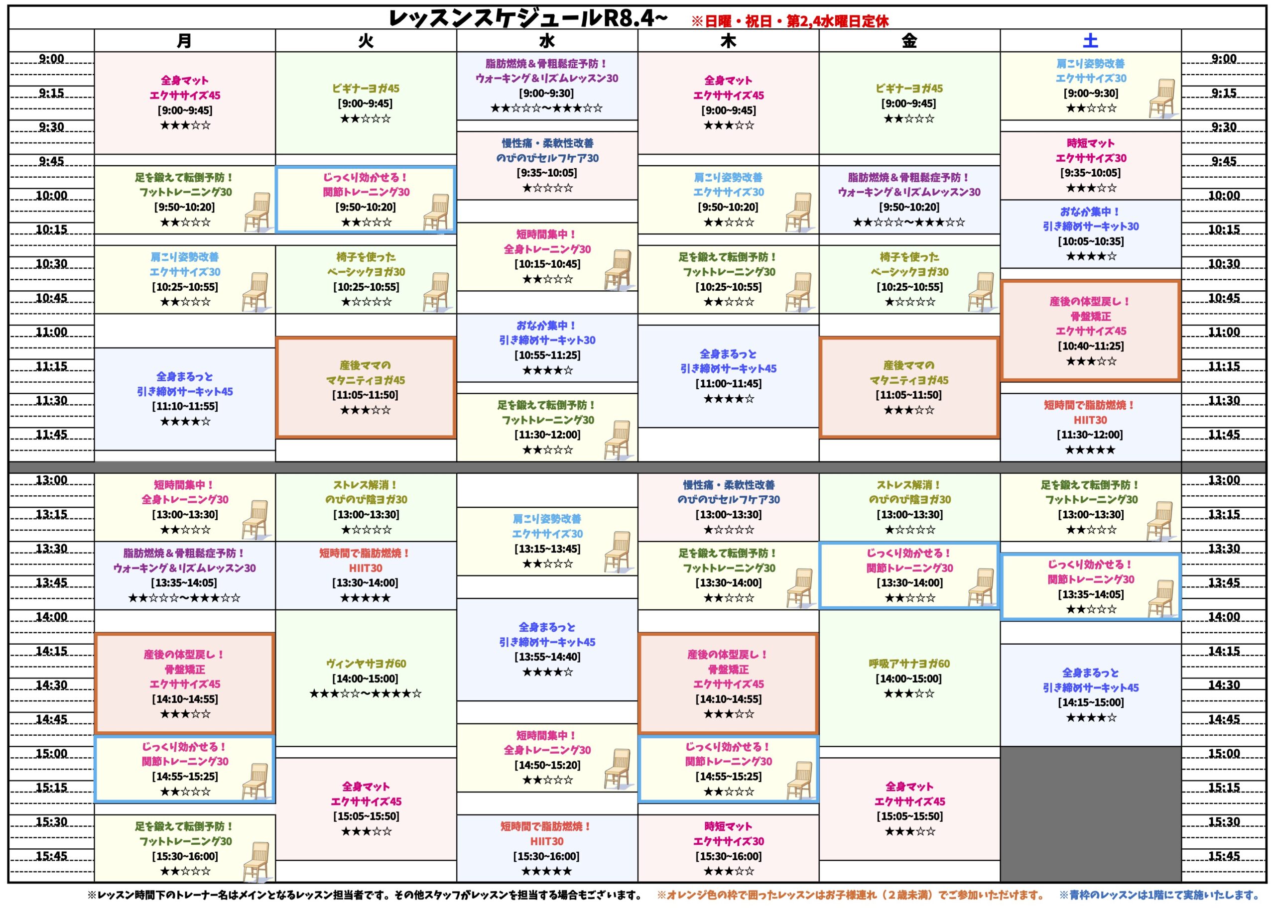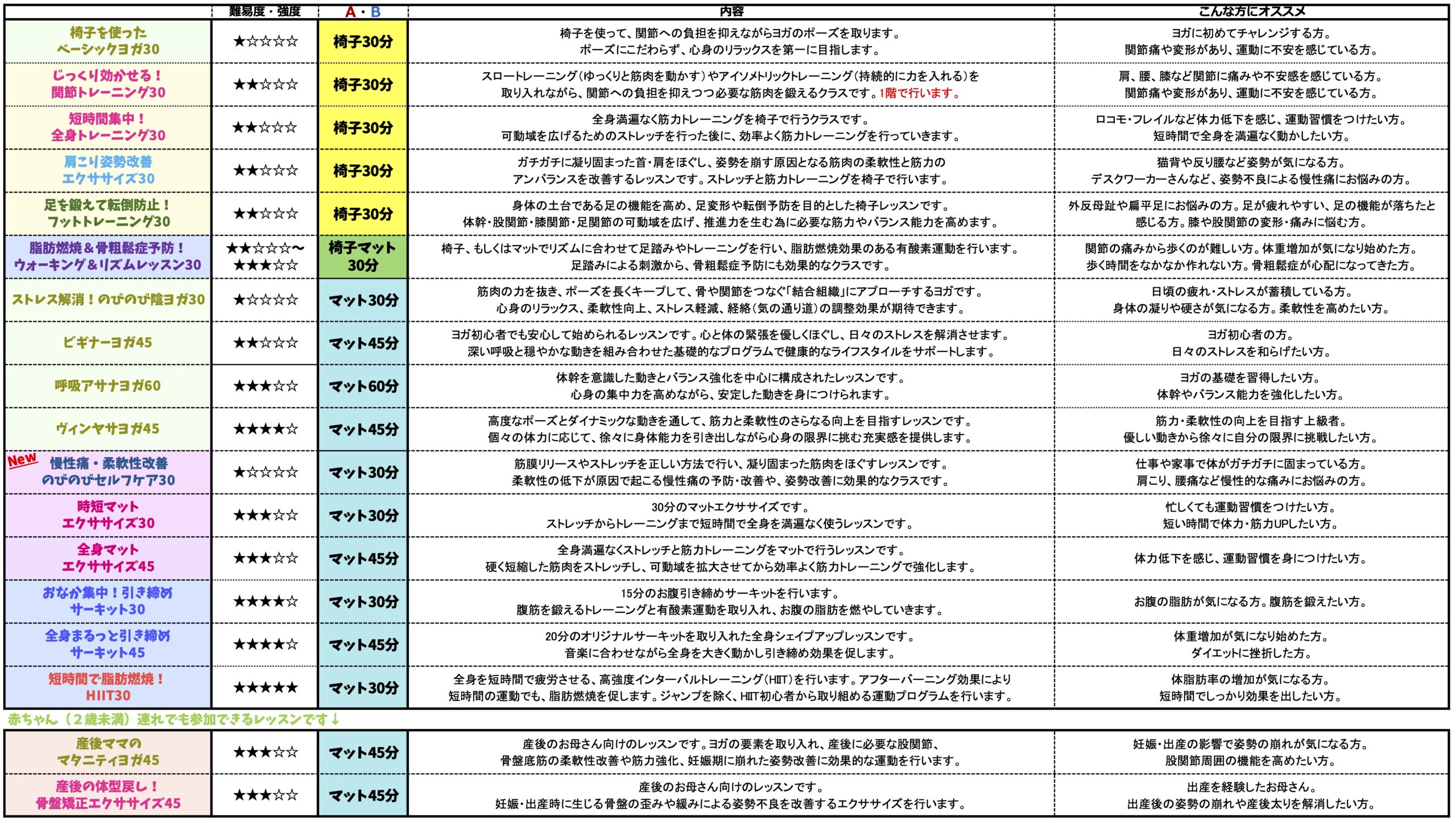 およそ四半期毎にレッスン改定があり、黙々とマシンジムでトレーニングするのが苦手な方にも飽きずに楽しんでもらえる内容です。