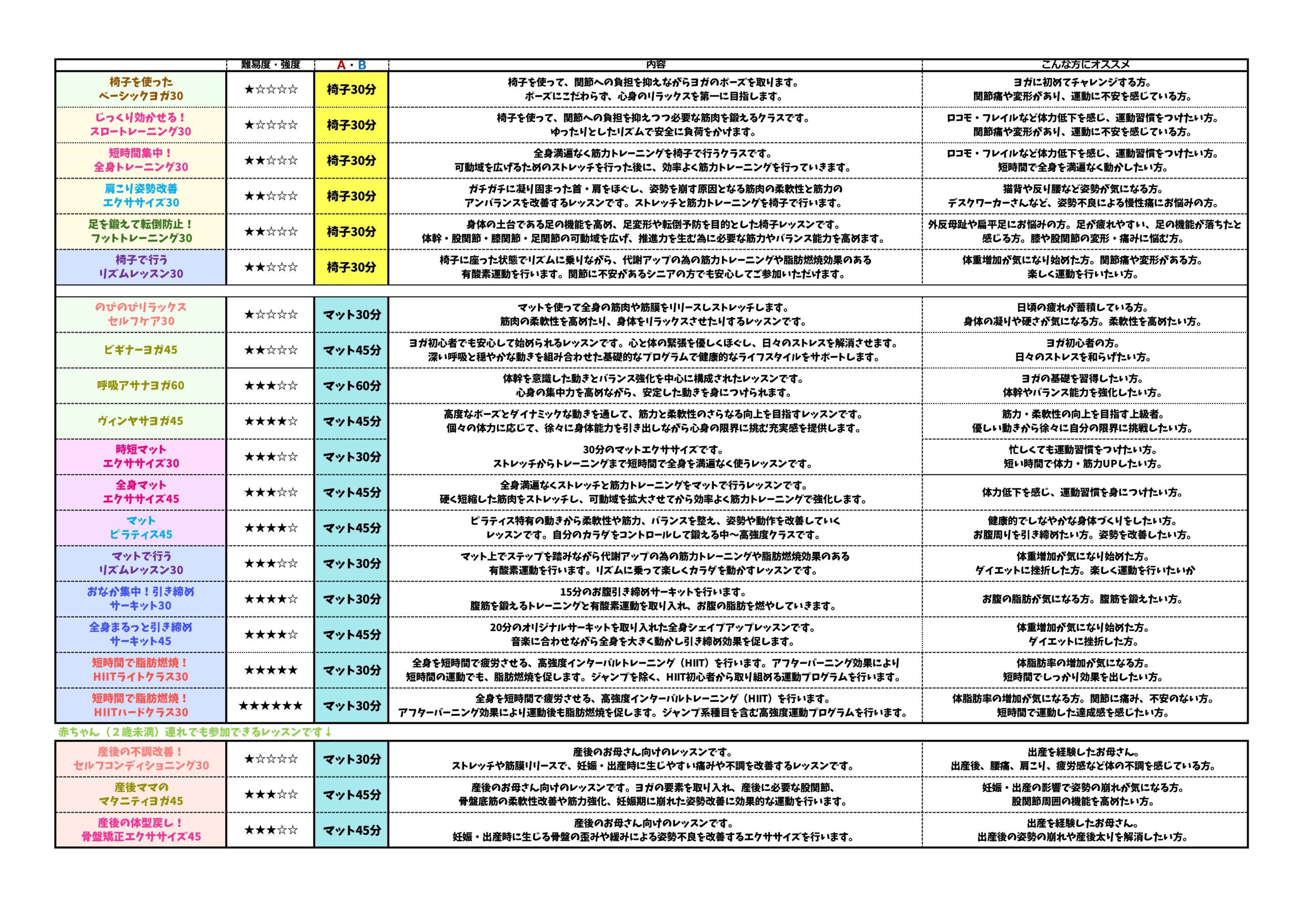 ヨガからマットピラティスまで全16種豊富なレッスン